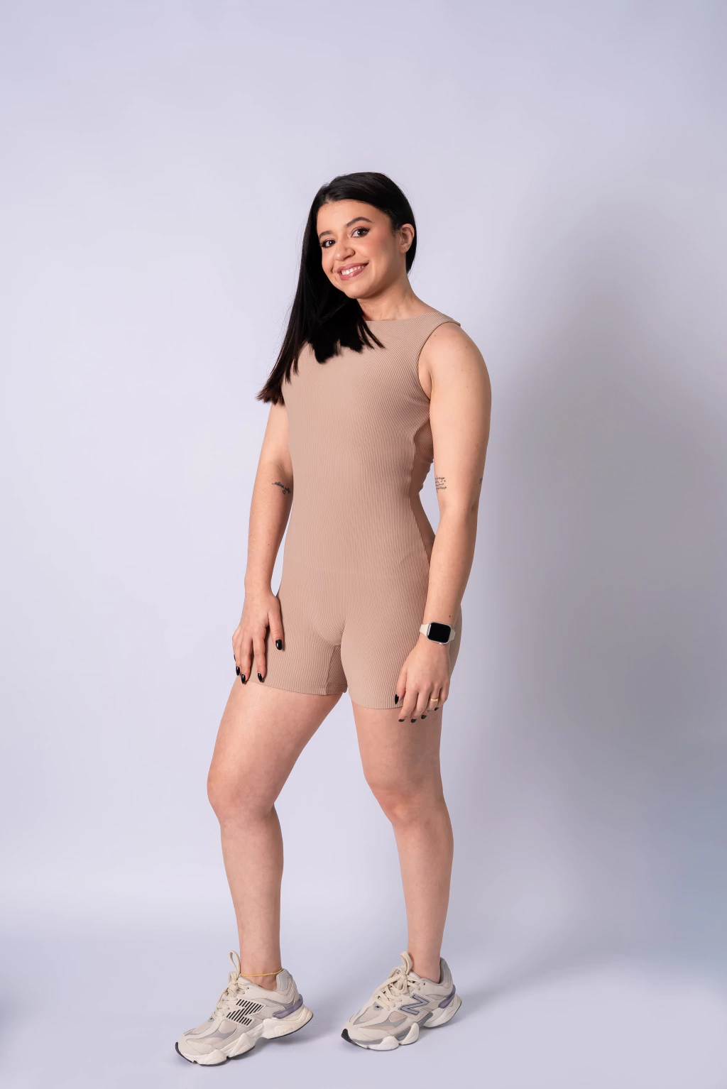 Macaquinho canelado em tom nude, com caimento leve e confortável.